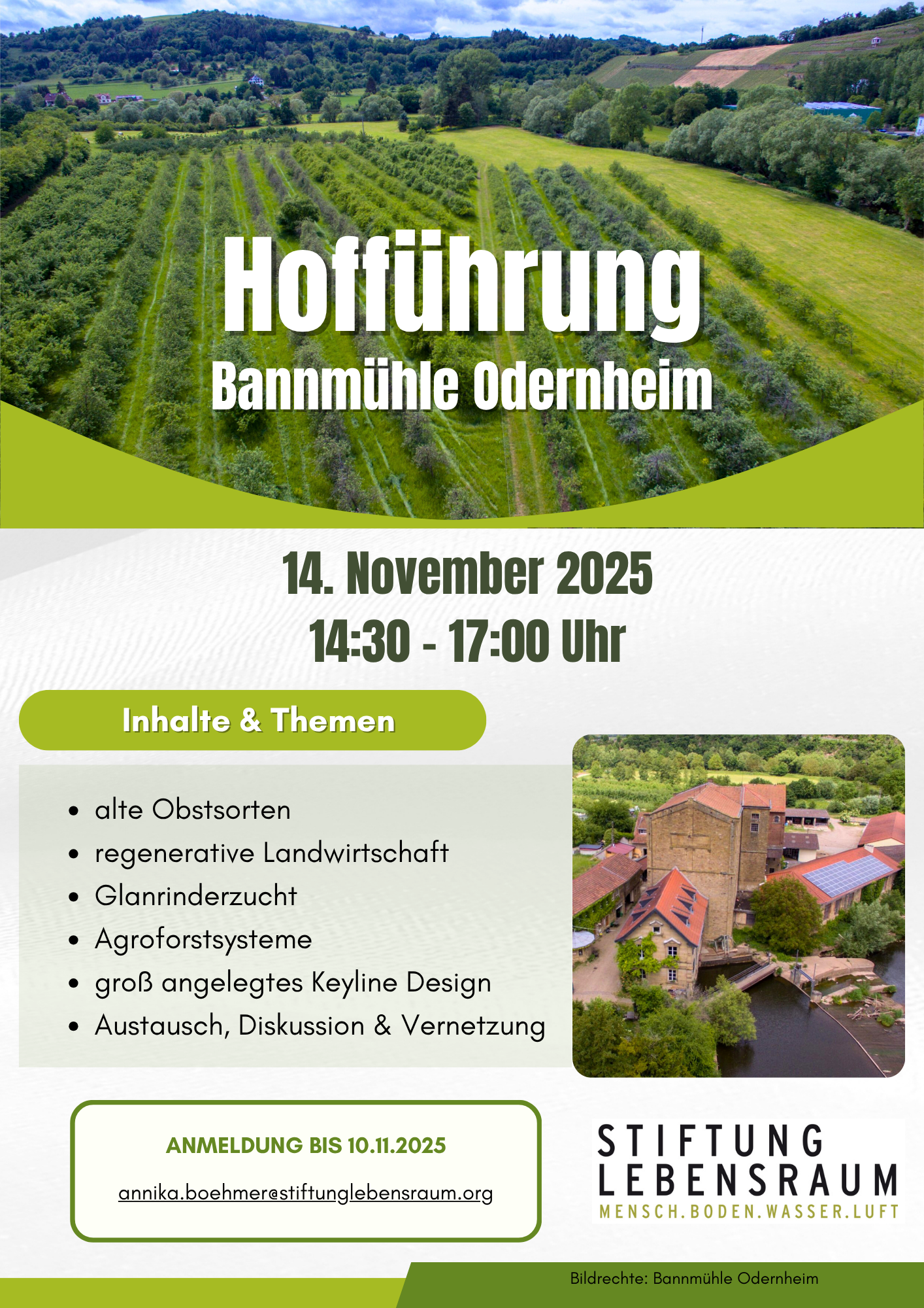 Ein Biolandbetrieb mit vielen Seiten! Fast vergessene Obstsorten, Glanrinder, Agroforstsysteme und ein großes sogenanntes Keyline Design. Die Hofexkursion bietet einen...